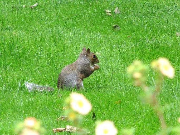 Keywords: squirrel rodent animal wildlife grass green furry mammal park brown eating environment habitat cute nature
