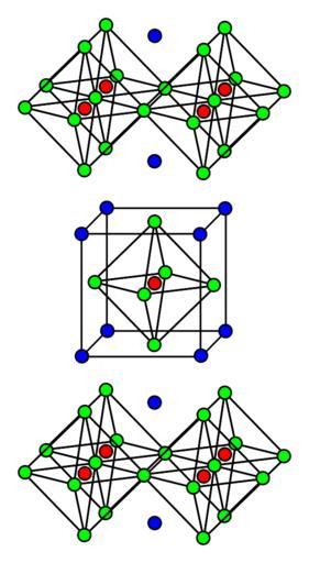 | Keywords: Sr 2 Ru O 4 Layered Perovskite Structure.svg en The structure of certain layered perovskites notably Sr_2 Ru O_4 and La_ 2-x Ba_x Cu O_4 In these examples the strontium lanthanum/barium ions are blue the ruthenium copper ions are red and the oxygen ions are green 2014-05-08 18 45 51 own Calavicci cc-zero Uploaded with UploadWizard Valid SVG created with Inkscape CC-Zero Crystal structures Perovskite | ||||