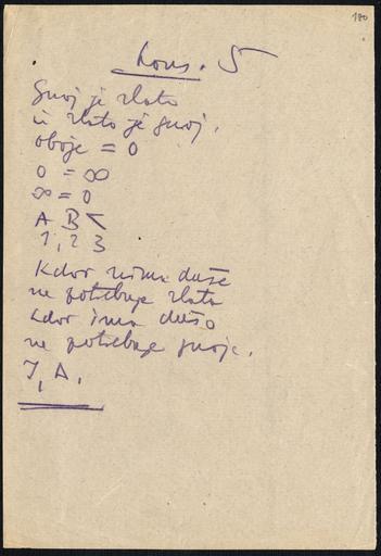 Keywords: Srečko Kosovel - Kons 5.jpg Rokopis pesmi Kons 5 Srečka Kosovela en The manuscript of the poem Kons 5 by Srečko Kosovel by 1926 UQ8QGDC9 creator Srečko Kosovel PD-old-auto 1926 assessments 1 Manuscripts by Srečko Kosovel Poems by Srečko Kosovel |