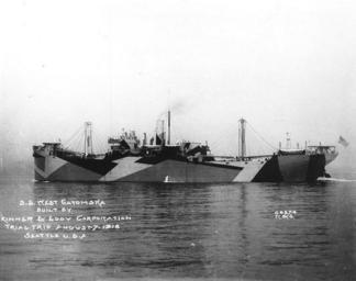 Keywords: SS West Gotomska on trials 1918.jpg en SS West Gotomska in camouflage paint on trials 7 August 1918 She was USS West Gotomska ID-3322 in 1918-19 http //www history navy mil/photos/sh-civil/civsh-w/w-gotmsk htm Photo NH 85884-A Naval Historical Center website author 1918-08-07 PD-USGov-Military-Navy Image cropped to remove redundant caption West Gotomska ship 1918 Dazzle camouflage |