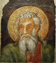 Keywords: St. Andrew Lippo d'Andrea OPA Florence.jpg artwork langswitch Fragment of a fresco which was removed from the first chapel of the left gallery at the time of the purist restoration of the Duomo of Florence Fragment d'une fresque enlevée de la première chapelle de la tribune gauche lors de la restauration puriste du Dôme de Florence Frammento di affresco chi è stato staccato dalla prima cappella della tribuna sinistra all'epoca del restauro purista del Duomo di Firenze tempera fresco Institution Museo dell'Opera del Duomo Florence Jastrow own picture 1334 “1336 Creator Lippo D'Andrea Di Lippo Public Domain Frescos of Saint Andrew Lippo d'Andrea Halo religious iconography Museo dell'Opera del Duomo Florence - Painting Detached frescos |