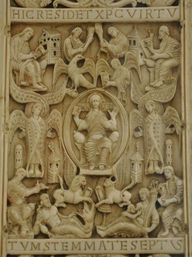 Keywords: St Gallen Tuotilotafeln Kopie img02.jpg St Gallen Lapidarium Ausstellung Die Kultur der Abtei St Gallen Kopie der Tuotilotafeln vom Evangelium longum Cod Sang 53 Detail Majestas Domini own 2013-06 Photo WolfD59 Sculptures in Lapidarium St Gallen Reliefs in St Gallen Wikipedia Bodensee 10 St Gallen Codex Sangallensis 53 Reliefs of Christ in Majesty 890s works Reliefs of symbols of Evangelists |