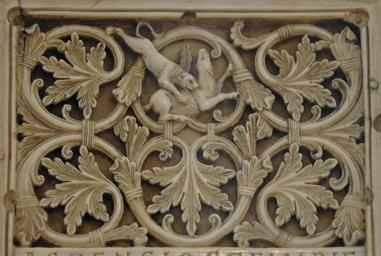 Keywords: St Gallen Tuotilotafeln Kopie img03.jpg St Gallen Lapidarium Ausstellung Die Kultur der Abtei St Gallen Kopie der Tuotilotafeln vom Evangelium longum Cod Sang 53 Detail Tierkampf own 2013-06 Photo WolfD59 Sculptures in Lapidarium St Gallen Reliefs in St Gallen Wikipedia Bodensee 10 St Gallen Codex Sangallensis 53 890s works Fighting animals in art |