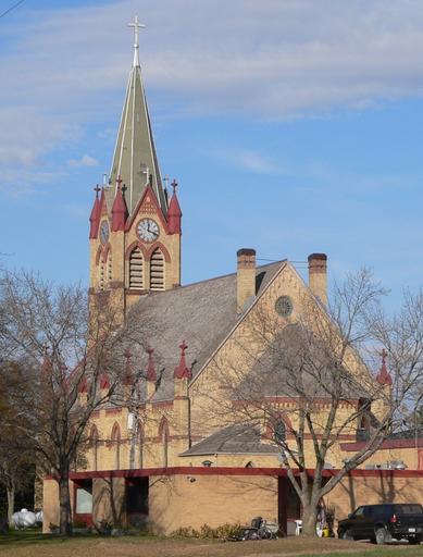 Keywords: St. Helena Immaculate Conception from SW 2.JPG St Helena Nebraska ; seen from the southwest The Gothic Revival church was built in 1897 With the 1919 rectory it is listed in the National Register of Historic Places own Ammodramus 2010-11-01 Cc-zero Pictures by Ammodramus Taken with Panasonic Lumix DMC-FZ20 Immaculate Conception church St Helena Nebraska Churches in the United States photographed in 2010