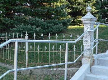 Keywords: St. Helena Immaculate Conception fence detail.JPG St Helena Nebraska The Gothic Revival church was built in 1897 With the 1919 rectory it is listed in the National Register of Historic Places own Ammodramus 2010-11-01 Cc-zero Pictures by Ammodramus Taken with Panasonic Lumix DMC-FZ20 Immaculate Conception church St Helena Nebraska |