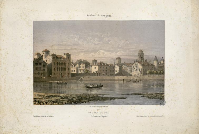 Keywords: St. Jean-de-Luz, le Château de l'Infante - Fonds Ancely - B315556101 A MERCEREAU 7 002.jpg Impression en 3 coul par Frick frères à Paris Fait partie d'un ensemble de recueils de lithographies de Mercereau composés de lithographies provenant de La France de nos jours vaste suite publiée par livraisons de 1853 à 1876 et comprenant 475 planches en deux tirages l'un à deux teintes noir et bistre l'autre en couleurs Les libraires ont réuni ces planches en albums de composition variable quant au nombre de planches et aux dessinateurs Asselineau Mercereau Maurice Deroy etc Un titre Les Pyrénées par Ch Mercereau; Bagnères-de-Luchon par Ch Mercereau était frappé sur le plat supérieur de la reliure de l'album ainsi que le nom du Libraire pour lequel il était réalisé La plupart des recueils de ces planches pyrénéennes portent le nom de Sajous libraire à Bagnères-de-Luchon Pl 1 à 18 numérotées de 370 à 386 Pl 374 pl 5 et 6 en double -- Pl 19 20 et 21 numérotées respectivement 407 415 et 418 Ces trois pl ont été dessinées et lithographiées par Asselineau -- Pl 22 23 et 24 numérotées 438 439 et 440 -- Pl 22 lith par Aubrun -- Pl 25 numérotée 441 -- Pl 26 à 40 numérotées de 327 à 341 -- Pl 41 à 46 numérotées de 363 à 368 -- Pl 47 numérotée 369 -- Pl 48 num 292 -- Pl 49 et 50 num 264 et 265 -- Pl 51 et 52 num 268 et 269 -- Pl 53 à 55 num de 293 à 295 -- Pl 56 num 300 -- Pl 57 à 59 num de 307 à 309 -- Pl 60 à 70 num de 316 à 326 -- Pl 71 num 63 dessin et lith d'Asselineau imprimerie Destouches -- Pl 72 et 73 num 87 et 88 dessin et lith d'Asselineau imprimerie Destouches -- Pl 74 num 124 signée Lebreton éditée chez Lalonde à Paris et imprimée chez Becquet frères à Paris -- Pl 75 num 161 dessin et litho d'Asselineau imprimerie Destouches --Pl 76 à 78 num de 207 à 209 -- Pl 79 à 81 num de 211 à 213 -- Pl 82 num 220 dessin et lith de Maurice imprimerie Destouches -- Pl 83 à 86 num de 226 à 229 -- Pl 87 et 88 num 234 et 235 -- Pl 89 à 91 num de 273 à 275 -- Pl 92 et 93 num 290 et 291 Pièces jointes 6 pl sépia dont certaines sont des doubles du recueil de Mercereau Les cinq premières planches sont numérotées respectivement 318 321 324 331 386 La dernière planche n'est pas extraite de La France de nos jours mais de L'Espagne pittoresque et monumentale Ces six planches sont signées Mercereau éditées chez Sinnet et imprimées chez Frick frères Ancely René 1876 - 1966 Possesseur fre public domain domaine public B315556101_A_MERCEREAU_7_002 jpg image/jpeg 1 f de pl lithogr ; 32 cm oblong Frick frères Imprimeur Sinnet F Éditeur http //numerique bibliotheque toulouse fr/collect/general/index/assoc//ark /74899/B315556101_A_MERCEREAU_7_002 dir/B315556101_A_MERCEREAU_7_002 jpg Bibliothèque municipale de Toulouse A-MERCEREAU 7-2 Creator Charles Mercereau http //catalogues toulouse fr/web2/tramp2 exe/do_keyword_search/log_in setting_key BMT1 servers 1home query p001626 St Jean-de-Luz intérieur de l'Eglise Biarritz Vue générale prise du Phare Château de Mauvesin près Bagnères-de-Bigorre Hautes Pyrénées Bagnères de Bigorre Hautes Pyrénées - Intérieur de l'Eglise des Carmes en couleurs Bagnères de Bigorre Hautes Pyrénées - Intérieur de l'Eglise des Carmes Bagnères-de-Bigorre - Eglise et couvent des Carmes Bagnères-de-Bigorre Hautes-Pyrénées - Tour des Jacobins Cascade et Pont de Magenta Vallée de l'Esponne Hautes Pyrénées Cascade de Trémes-Aïgues Vallée de Grip Hautes Pyrénées St Sauveur Hautes Pyrénées - Le Pont Napoléon Bayonne - Eglise St André Arreau et la Vallée d'Aure Hautes Pyrénées - Vue prise au dessus de la route du Col d'Aspin Auch - Vue prise sur les bords du Gers Auch - Vue de la Cathédrale Auch - Intérieur de la Cathédrale Bagnères-de-Bigorre - Vue Générale prise de la Fontaine ferrugineuse Eaux-Bonnes Basses-Pyrénées - L'établissement Thermal et la Chapelle Nantes - Vue de l'Eglise Ste Croix Le Croisic - Plage des Baigneurs et Etablissement de Bains Le Folgoët - Vue de l'Eglise Brèche de Roland prise de Gèdres Hautes Pyrénées Chapelle du couvent de Pouëlahun i e Pouey Lahun - Vallée d'Azun Hautes Pyrénées Eglise des Templiers à Luz Le Pont de Scia - Route de Luz à Gavarnie Hautes-Pyrénées Vue de l'établissement de la Raillière près Cauterets Hautes-Pyrénées Vue générale de Cauterets prise du Mamelon Vert Hautes-Pyrénées Vue du Fort de Lourdes Hautes-Pyrénées Vue d'Argelès-de-Bigorre Hautes-Pyrénées Vue de St Sauveur Hautes-Pyrénées Le Pas de l'Echelle Route de Gavarnie Hautes-Pyrénées Fond de la Vallée d'Argelès prise de la terrasse de St Savin Hautes-Pyrénées Place Grammont à Pau Basses-Pyrénées Vue générale des Eaux-Bonnes Basses-Pyrénées Barèges et la Vallée du Bastan Hautes-Pyrénées Chute supérieure du Pont d'Espagne Hautes-Pyrénées La grotte miraculeuse à Lourdes Hautes-Pyrénées Eglise de Bétharram et Pont de Lestelle Basses Pyrénées Cascade du Cerizet Près Cauterets Hautes-Pyrénées Pic du Midi d'Ossau 2885m Basses Pyrénées - Vue prise du 3e plateau de Bious-Artigues Pau - Vue prise de la terrasse du Château Toulouse - Cloître du Musée Galerie du Moyen-Age Pau - Vue du Château prise du Parc Toulouse - Cloître du Musée et Clocher des Augustins Toulouse - La maison de pierre fragment de la façade Toulouse - Intérieur de St Sernin St Jean-de-Luz Fort du Socoa Toulouse - Vue du Capitole Bordeaux Vue de la Porte du Caillau i e Cailhau Bordeaux Porte de la grosse Cloche Bordeaux Vue des Quinconces Bordeaux - Vue de la Tour et de l'Eglise de St Michel Toulouse - Vue du Pont de pierre prise du Quai de Brienne Toulouse - Abside de l'Eglise de St Sernin de l'an 1097 Toulouse - Choeur de la Cathédrale St Etienne Rouen - Hôtel de Bourgtheroulde Biarritz - Vue des Bains Napoléon et du Casino Biarritz - Vue des Bains du Port Vieux Biarritz - Vue de l'Entrée de la Ville à l'arrivée de Bayonne Le Lac Bleu Hautes-Pyr