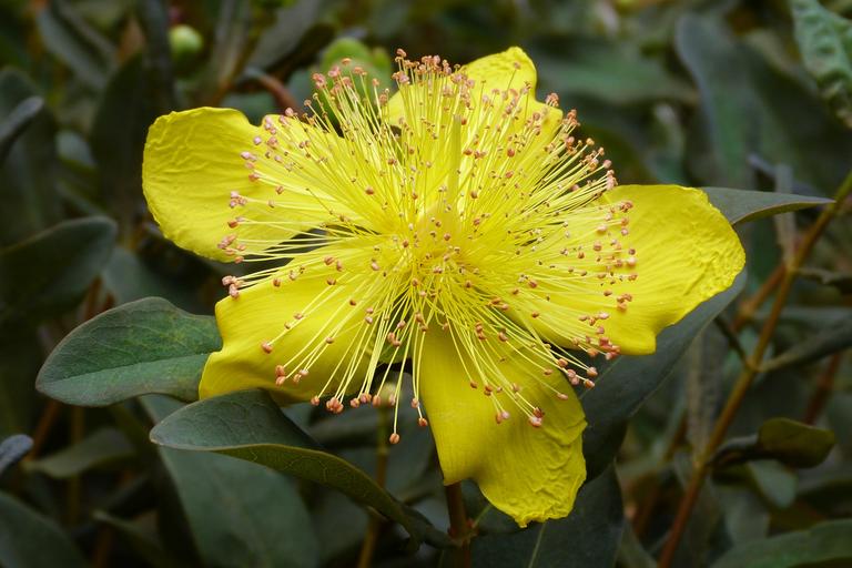 Keywords: st john's wort flower macro yellow garden spring flowering stamens