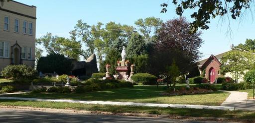 Keywords: St. Mary Assumption (Dwight, Nebraska) garden and grottoes 1.JPG en Garden and grottoes at St Mary of the Assumption Church complex in Dwight Nebraska; seen from the south The school to the west is at the left edge of the photo; the church to the east is just out of frame to the right The Mother of Grace shrine is in the center; the irregularly-shaped structure behind and to its left is the Gesthemane grotto; a small brick chapel is to the right 2010-09-14 16 11 40 own Ammodramus cc-zero Uploaded with UploadWizard Pictures by Ammodramus Taken with Panasonic Lumix DMC-FZ20 St Mary of the Assumption complex Dwight Nebraska |