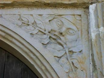 Keywords: St Michael, Horsted Parva, green man.JPG en St Michael Horsted Parva carving of green man above west door 2016-03-14 own Poliphilo other versions cc-zero Little Horsted
