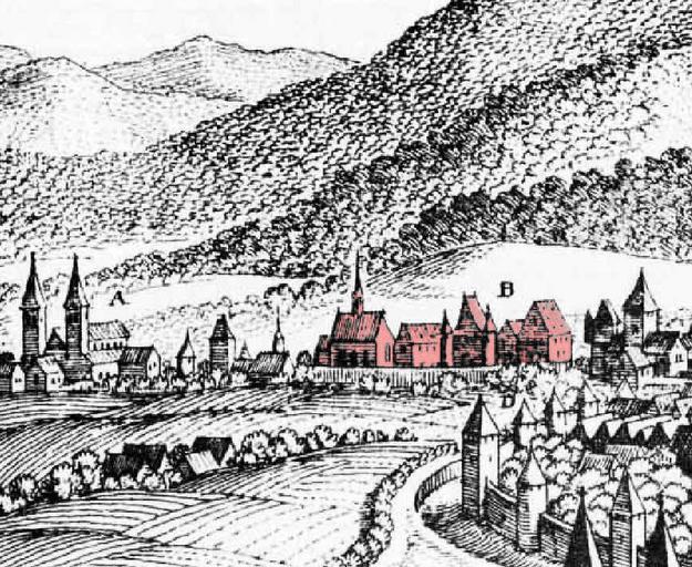 | Keywords: St. Paulin und zentral St. Maximin (Stich von Merian) mit Stadtmauer.jpg St Paulin links und die Reichsabtei St Maximin Mitte außerhalb von Trier Stadtmauern rechts unten Ausschnitt aus einem Stich aus dem Buch žTopographia Archiepiscopatuum Moguntinensis von 1646 Ansicht vermutlich von 1548 siehe Kommentar auf image De Merian Mainz Trier Köln 045 jpg Die Einfärbung stammt nicht von dem Originalstich und wurde ergänzt um den Bau hervorzuheben St Paulin left and St Maximin's Abbey middle outside of the German town Trier defensive walls on the lower right Part of an engraving from the 1646 book Topographia Archiepiscopatuum Moguntinensis The view is probably taken from 1548; see commentary on image De Merian Mainz Trier Köln 045 jpg - The coloration is not from the original engraving and was added to highlight the building Trèves Allemagne à droite Partie d'une gravure du livre «Topographia Archiepiscopatuum Moguntinensis» de 1646 Cette vue est probablement de 1548; voir commentaire sur image De Merian Mainz Trier Köln 045 jpg en anglais et allemand “ La colorisation n'origine pas de la gravure et a été ajouté pour faire ressortir le batiment de Scan eines historischen Buchs durch http //www digitalis uni-koeln de/digitaletexte html applies as for the image with highlighting <br/> Image De Merian Mainz Trier Köln 045 jpg image before cropping ;<br> Image St Paulin Stich von Merian jpg smaller part of the original image features only St Paulin without St Maximin nor the defensive walls of Trier <br> Image St Paulin und St Maximin Stich von Merian mit Stadtmauer jpg somewhat more focused on St Paulin PD-old-100 Merian-Stich Trier City walls in Rhineland-Palatinate St Paulin Trier St Maximin Trier |