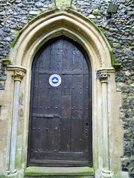 Keywords: door architecture arch outdoor 85/9/104 MAIN ROAD 25-AUG-54 ST PAUL'S CRAY CHURCH OF ST PAULINUS GV II* The nave, N chapel and western part of the chancel are C11. S aisle added late C12 or early C13, and nave N side preserves evidence for a former chapel of the early C12 and a former N aisle of c1200. W tower late C12 or early C13. Some C15 windows, and roof partially of this date. Top of tower is C17. Extensively restored in 1859-61, and the S chapel added in 1863. MATERIALS Flint rubble with stone and brick dressings. Shingled spire, tiled roofs. PLAN Nave with S aisle and evidence for a former N aisle, chancel with N and S chapels, W tower EXTERIOR Externally, the church is notable for the clearly visible evidence for its development. In the N nave wall is the remains of a small C11 window, cut by the former N arcade, with the head turned in brick. Blocked, pointed arches, in the N nave wall are evidence for the former two-bay N aisle, probably of c1200. C15 windows of two lights with square heads and two trefoiled lights are inset into the blocking of the arches, and there is a small lancet to the E of the arcade. An early C12 blocked round arch in the W wall of the N chapel is the remains of a former aisle or porticus chapel that was subsequently incorporated into the N aisle and then demolished with it. The NE quoin of the N chapel is made of Roman tile, and the E gable has irregular stone banding and brick along the gable edges. The NW corner of the nave has a brick quoin, probably late C17 and contemporary with those on the tower. The S aisle W window has late C13-style Geometric tracery, heavily or entirely renewed in the C19. The S windows, also mostly C19, are C15 in style with two lights in square heads. The N chancel chapel has a C19 plate tracery window of two lights with a quatrefoil in the head. The C19 S chancel chapel has Early English-style windows. The chancel E window is C16 in style and has a very depressed head with three uncusped lights. Two stage W tower with a shingled broach spire, the lower part c1200, the upper part rebuilt or restored in the late C17. C17 brick buttresses on the lower stage and C17 quoins on the upper stage, with a stone string course separating the stages. The W door has a moulded arch with dogtooth ornament on nook shafts with foliate capitals. Above the W door is a window of uncertain date with a C19 plate tracery insert, and there are two small, round openings in the lower part of the second stage. There are narrow lancets in the N and S walls of the lower stage, and late C17 round headed windows with brick dressings in the upper stage. INTERIOR The interior is notable for the three-bay S arcade, which is in two distinct parts, both with round piers and pointed arches. The eastern bay is late C12 and has a flattened roll on the soffit of the arch and lively capitals with acanthus leaves and carved heads. The western two bays have a chamfer on the inner arch moulding and moulded capitals to the pier and W respond. The S chapel was added in 1863, and the arch between the aisle and the S chapel and from the S chapel to the chancel have C19 Early English-style foliate capitals on polygonal responds; the Early English style arch into the N chapel is similar. The two bay former N arcade, still visible internally, was added c1200 and was similar to the western bays of the S arcade. It was set in the western part of the nave wall, presumably to accommodate the lost or covered over opening to the former N chapel. The head of a blocked C11 window is visible above the former arcade at the E end, and the narrow rood loft door opens internally above the E end of the S arcade. There is no chancel arch. The chancel S windows have hood moulds, and the remains of a triplet of lancets are visible in the E wall. The tower arch is also c1200; above it is a two-light C15 style opening. The nave roof was damaged in a fire in 1968, but retains some late-medieval timber. PRINCIPAL FIXTURES There is a C13 coffin lid with a foliated cross in the S chapel, and one late C19 monument. There are no other historic fittings of note remaining in the church. HISTORY The dedication to St Paulinus, a C7 bishop of Rochester, is rare. A church is mentioned in the Doomsday book of 1086, and the present structure was built in the C11. In its original form it appears to have comprised a nave and short chancel with a N porticus chapel flanking the chancel. In the early C12 a N nave chapel was added to the W end of the N chancel porticus, the arch into which is still visible externally. The eastern bay of the S aisle was added in the late C12 and a few years later c1200 the remaining two bays of the S aisle were added. A two bay N aisle which incorporated or continued the N nave chapel was added at this time, and the W tower is also late C12 or early C13. The chancel was extended eastwards in the C13. The chancel arch was removed at an unknown, presumably medieval date, and the aisle windows were redone in the late C15; probably also at this time the S aisle was widened. The top of the tower was remodelled and buttresses added in the C17, and perhaps also at this time the N aisle was demolished, the arches blocked, and the former aisle windows reset in the blocking. The church was restored in 1859-61, and the S chapel was added in 1863. There was further work after a fire in 1968, and a C13 stiff-leaf capital is said to have been found during the restoration. The church became redundant in the late 1970s and has been stripped of its furnishings. The former font, a polygonal example of the C15, is now in St Martin, Chelsfield (Bromley, GL), and the good C19 lectern with a pelican in her piety is in St Mary, St Mary Cray (Bromley, GL). 85/9/104 MAIN ROAD 25-AUG-54 ST PAUL'S CRAY CHURCH OF ST PAULINUS GV II* The nave, N chapel and western part of the chancel are C11. S aisle added late C12 or early C13, and nave N side preserves evidence for a former chapel of the early C