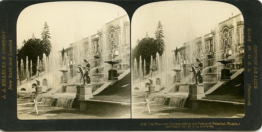| Keywords: St. Petersburg. Russia. — Stereo card 02.jpg The Fountain Terrace before the Palace of Peterhof Russia Те аса Фонтанов пе ед Дво цом Пете гофа Россия turn of the century 20 http //unrealalex livejournal com unknown PD-old Stereo cards of Russia Images uploaded by Steven Pavlov from various sources |