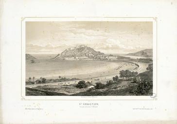 Keywords: St. Sébastien - Vue prise de la route d'Hernani - Fonds Ancely - B315556101 A MERCEREAU 7 098.jpg Impression en 3 coul par Frick frères à Paris Fait partie d'un ensemble de recueils de lithographies de Mercereau composés de lithographies provenant de La France de nos jours vaste suite publiée par livraisons de 1853 à 1876 et comprenant 475 planches en deux tirages l'un à deux teintes noir et bistre l'autre en couleurs Les libraires ont réuni ces planches en albums de composition variable quant au nombre de planches et aux dessinateurs Asselineau Mercereau Maurice Deroy etc Un titre Les Pyrénées par Ch Mercereau; Bagnères-de-Luchon par Ch Mercereau était frappé sur le plat supérieur de la reliure de l'album ainsi que le nom du Libraire pour lequel il était réalisé La plupart des recueils de ces planches pyrénéennes portent le nom de Sajous libraire à Bagnères-de-Luchon Pl 1 à 18 numérotées de 370 à 386 Pl 374 pl 5 et 6 en double -- Pl 19 20 et 21 numérotées respectivement 407 415 et 418 Ces trois pl ont été dessinées et lithographiées par Asselineau -- Pl 22 23 et 24 numérotées 438 439 et 440 -- Pl 22 lith par Aubrun -- Pl 25 numérotée 441 -- Pl 26 à 40 numérotées de 327 à 341 -- Pl 41 à 46 numérotées de 363 à 368 -- Pl 47 numérotée 369 -- Pl 48 num 292 -- Pl 49 et 50 num 264 et 265 -- Pl 51 et 52 num 268 et 269 -- Pl 53 à 55 num de 293 à 295 -- Pl 56 num 300 -- Pl 57 à 59 num de 307 à 309 -- Pl 60 à 70 num de 316 à 326 -- Pl 71 num 63 dessin et lith d'Asselineau imprimerie Destouches -- Pl 72 et 73 num 87 et 88 dessin et lith d'Asselineau imprimerie Destouches -- Pl 74 num 124 signée Lebreton éditée chez Lalonde à Paris et imprimée chez Becquet frères à Paris -- Pl 75 num 161 dessin et litho d'Asselineau imprimerie Destouches --Pl 76 à 78 num de 207 à 209 -- Pl 79 à 81 num de 211 à 213 -- Pl 82 num 220 dessin et lith de Maurice imprimerie Destouches -- Pl 83 à 86 num de 226 à 229 -- Pl 87 et 88 num 234 et 235 -- Pl 89 à 91 num de 273 à 275 -- Pl 92 et 93 num 290 et 291 Pièces jointes 6 pl sépia dont certaines sont des doubles du recueil de Mercereau Les cinq premières planches sont numérotées respectivement 318 321 324 331 386 La dernière planche n'est pas extraite de La France de nos jours mais de L'Espagne pittoresque et monumentale Ces six planches sont signées Mercereau éditées chez Sinnet et imprimées chez Frick frères Ancely René 1876 - 1966 Possesseur fre public domain domaine public B315556101_A_MERCEREAU_7_098 jpg image/jpeg 1 f de pl lithogr ; 31cm oblong Sinnet F Éditeur Frick frères Imprimeur http //numerique bibliotheque toulouse fr/collect/general/index/assoc//ark /74899/B315556101_A_MERCEREAU_7_098 dir/B315556101_A_MERCEREAU_7_098 jpg Bibliothèque municipale de Toulouse A-MERCEREAU 7-98 Creator Charles Mercereau http //catalogues toulouse fr/web2/tramp2 exe/do_keyword_search/log_in setting_key BMT1 servers 1home query p001722 St Jean-de-Luz intérieur de l'Eglise St Jean-de-Luz le Château de l'Infante Biarritz Vue générale prise du Phare Château de Mauvesin près Bagnères-de-Bigorre Hautes Pyrénées Bagnères de Bigorre Hautes Pyrénées - Intérieur de l'Eglise des Carmes en couleurs Bagnères de Bigorre Hautes Pyrénées - Intérieur de l'Eglise des Carmes Bagnères-de-Bigorre - Eglise et couvent des Carmes Bagnères-de-Bigorre Hautes-Pyrénées - Tour des Jacobins Cascade et Pont de Magenta Vallée de l'Esponne Hautes Pyrénées Cascade de Trémes-Aïgues Vallée de Grip Hautes Pyrénées St Sauveur Hautes Pyrénées - Le Pont Napoléon Bayonne - Eglise St André Arreau et la Vallée d'Aure Hautes Pyrénées - Vue prise au dessus de la route du Col d'Aspin Auch - Vue prise sur les bords du Gers Auch - Vue de la Cathédrale Auch - Intérieur de la Cathédrale Bagnères-de-Bigorre - Vue Générale prise de la Fontaine ferrugineuse Eaux-Bonnes Basses-Pyrénées - L'établissement Thermal et la Chapelle Nantes - Vue de l'Eglise Ste Croix Le Croisic - Plage des Baigneurs et Etablissement de Bains Le Folgoët - Vue de l'Eglise Brèche de Roland prise de Gèdres Hautes Pyrénées Eglise des Templiers à Luz Chapelle du couvent de Pouëlahun i e Pouey Lahun - Vallée d'Azun Hautes Pyrénées Le Pont de Scia - Route de Luz à Gavarnie Hautes-Pyrénées Vue de l'établissement de la Raillière près Cauterets Hautes-Pyrénées Vue générale de Cauterets prise du Mamelon Vert Hautes-Pyrénées Vue du Fort de Lourdes Hautes-Pyrénées Vue d'Argelès-de-Bigorre Hautes-Pyrénées Vue de St Sauveur Hautes-Pyrénées Le Pas de l'Echelle Route de Gavarnie Hautes-Pyrénées Fond de la Vallée d'Argelès prise de la terrasse de St Savin Hautes-Pyrénées Place Grammont à Pau Basses-Pyrénées Vue générale des Eaux-Bonnes Basses-Pyrénées Barèges et la Vallée du Bastan Hautes-Pyrénées Chute supérieure du Pont d'Espagne Hautes-Pyrénées La grotte miraculeuse à Lourdes Hautes-Pyrénées Eglise de Bétharram et Pont de Lestelle Basses Pyrénées Cascade du Cerizet Près Cauterets Hautes-Pyrénées Pic du Midi d'Ossau 2885m Basses Pyrénées - Vue prise du 3e plateau de Bious-Artigues Toulouse - Cloître du Musée et Clocher des Augustins Pau - Vue prise de la terrasse du Château Pau - Vue du Château prise du Parc Toulouse - Cloître du Musée Galerie du Moyen-Age Toulouse - La maison de pierre fragment de la façade Toulouse - Intérieur de St Sernin St Jean-de-Luz Fort du Socoa Toulouse - Vue du Capitole Bordeaux Vue de la Porte du Caillau i e Cailhau Bordeaux Porte de la grosse Cloche Bordeaux Vue des Quinconces Bordeaux - Vue de la Tour et de l'Eglise de St Michel Toulouse - Vue du Pont de pierre prise du Quai de Brienne Toulouse - Abside de l'Eglise de St Sernin de l'an 1097 Toulouse - Choeur de la Cathédrale St Etienne Rouen - Hôtel de Bourgtheroulde Biarritz - Vue des Bains Napoléon et du Casino Biarritz - Vue des Bains du Port Vieux Biarritz - Vue de l'Entrée de la Ville 