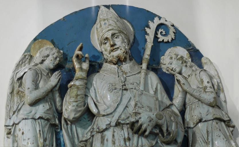 Keywords: St Zenobius Della Robbia OPA Florence.jpg St Zenobius and two angels Lunette from the bell tower of the Duomo in Florence Italy removed in the 18th century Glazed terracotta Saint Zénobie et deux anges Lunette provenant du campanile du Dôme de Florenc Italie ôtée au XVIIIe siècle Terre cuite glaçurée San Zanobi fra due angeli Lunetta del campanile del Duomo di Firenze soppressa nel XVIII secolo Terracotta invetriata Jastrow own picture 1496 Creator Andrea della Robbia Public Domain Andrea della Robbia Reliefs of Saint Zenobius in Italy Lunettes in Florence Museo dell'Opera del Duomo Florence - 15th century sculpture Glazed terracotta in Florence |