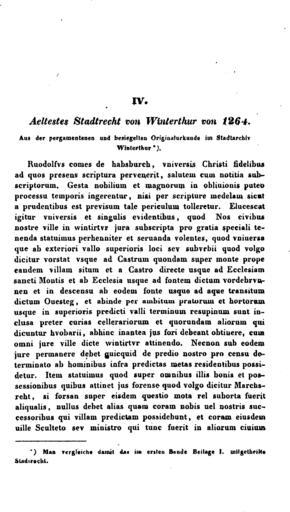 Keywords: Staats- und Rechtsgeschichte der Stadt und Landschaft Zürich, Band 2, Seite 391.png de Als Beilage im Buch abgedruckt Originalabschrift des Winterthurer Stadtrecht von 1264 1 Teil Staats- und Rechtsgeschichte der Stadt und Landschaft Zürich Band 2 Seite 391 Dr J C Blunschi 1839 PD-old-70 digitalisiert von Google http //books google com/books id Cd4rAAAAYAAJ pg PA391 History of Winterthur