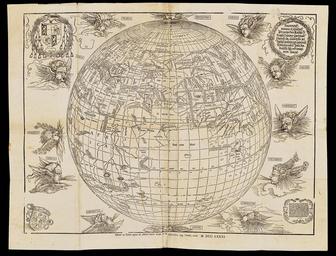 | Keywords: Stabius world map.jpg en A 1781 copy of Johann Stabius's 1515 world map whose engraving is credited to Albrecht Dürer A planisphere globe surrounded by the twelve winds equivalent to Ptolemy's third projection The arms of Matthäus Cardinal Lang von Wellenburg archbishop of Salzburg at upper left; the arms of Johann Stabius imperial astrologer at lower left Dedication to Cardinal Lang at upper right; imperial privilege and date at lower right la Reverendiss domino et illustriss Principi Dño Matheo T Angeli Diacono Cardinali Gurceñ Sa Caẽs Mtis per Italia locũtenenti generali vdño suo colen Joañ Stabius Au hãc orb imaginem dedicat Imp Caes niuus Maximilianus P F Aug Privilegio caiut nequis Libros membraenas cartas pictu'as volumĩa vel quecuqe alia que Ioan Stabius Au sub suo titulo nomie emiserit sine sua expressa voluntate In decem annis a die editioĩs sequentibus imprimat sub pena amissionis rerum impressarum decem mâcharum auri puri 1 5 1 5 Editum ex Tabula lignea ab Alberto Durer incisa quae in Bibliotheca Augustae Vindobonae extat M DCC LXXXI 1781 http //www masterart com/D C3 9CRER-Albrecht-and-BARTSCH-Adam-Von-Sammlung-verschiedener-alter-Holzschnitte-grosstentheile-nach-Albrecht-D C3 BCrers-Zeichn-PortalDefault aspx tabid 53 dealerID 19147 objectID 586474 Master Art Johann Stabius after Ptolemy al other versions <gallery> File Stabius world map II jpg </gallery> PD-old-70-1923 PD-100 1780s maps of the world 1781 maps Maps in Latin Stabius world map 1781 Adam von Bartsch |
