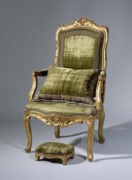 | Keywords: Stadtholder Chair of Prince William V of Orange (chair 2).jpg nl Stadhoudersstoel van notenhout verguld en bekleed met groen fluweel met zilver passement afgezet De stoel rust op overhoeks geplaatste S-vormige poten die zonder onderbreking in het zitraam overgaan Aan de voet zijn zij met acanthusblad versierd boven de zwelling met bloemtakken evenals de geschulpte zitregels De armleggers hebben kussentjes wijken buitenwaarts en eindigen in voluten De armleggerstutten zijn achterwaarts geplaatst komen uit het zitraam voort en gaan S-vormig in de armleggers over Het rugraam is aan vier zijden geschulpt en versierd met bloem- en bladtakken Profiellijsten door kleine voluten onderbroken omgrenzen het meubel in zijn contour Bij de stoel hoort een los groen fluwelen kussen met zilveren passement en een voetenbank <br />Meubelmaker Onbekend en Stadtholders Chair made of walnut wood gilding covered with green velvet trimmed with silver braid The seat rests on diagonally placed S-shaped legs passing without a break into the seat frame At the base they are decorated with acanthus leaves above the swelling with flower branches as well as the scalloped's seat lines The armrests have pads districts outwards and end in volutes The armrest supports are installed backwards come from the seat frame and continue in the S-shaped armrests The back frame is scalloped on four sides and decorated with floral and leafy branches Profile lists broken by small scrolls framing the furniture in it's contour With the chair is an loose green velvet pillow with silver braid and an footstool <br />Furniture maker Unknown de Statthalter Stuhl aus Nussbaum mit Vergoldung grünem Samt mit silbernen Zopf abgeschnitten bedeckt Der Sitz ruht auf schräg gestellten S-förmige Beine vorbei ohne Pause in den Sitzrahmen An der Basis sind sie mit Akanthusblättern geschmückt über der Schwellung mit Blütenzweigen sowie die Regeln der hohen rücken ist Die Armlehnen haben Pads Bezirke nach außen und enden in Voluten Die Armlehnenstützen hinten installiert aus dem Sitzrahmen und gehen die in den S-förmigen Armlehnen Die rugraam ist überbacken auf vier Seiten und mit Blumen- und belaubten Zweigen dekoriert Profil Listen von kleinen blättert Grenze in seiner Kontur gebrochen Möbel Wenn der Stuhl ist ein loser grünem Samt Kissen mit Silberbarren und ein Fußschemel <br />Schreiner Unbekannt fr Chaise du gouverneur en chêne couvert de dorures velours vert galonné d'argent Le siège repose sur des pieds en forme de S placés en diagonale passant sans interruption dans le cadre du siège A la base ils sont décorés de feuilles d'acanthe au-dessus du gonflement avec des branches de fleurs ainsi que les règles de l'festonnés Les accoudoirs sont équipés de coussins des districts vers l'extérieur et se terminent en volutes Les supports d'accoudoirs sont installées à l'envers sortir du cadre de siège et sortent dans les accoudoirs en forme de S sur Le rugraam est festonné sur les quatre côtés et décoré avec des branches de fleurs et de feuilles Listes profil en petits rouleaux frontière meubles cassés dans son contour Lorsque le président est un oreiller lâche de velours vert avec des lingots d'argent et un tabouret <br />Cabinet inconnu es Gobernador Silla de madera de roble dorado cubierto de terciopelo verde adornado con trenza de plata El asiento se apoya en las piernas en forma de S en diagonal colocados que pasa sin interrupción en el marco del asiento En la base están decorados con hojas de acanto por encima de la hinchazón con ramas de flores así como las normas de la festoneados Los apoyabrazos tienen cojines distritos hacia el exterior y terminan en volutas Los soportes de los apoyabrazos están instalados hacia atrás salir de la estructura del asiento y salen en los reposabrazos en forma de S en El rugraam es festoneado en los cuatro lados y decorado con ramas florales y frondosos Listas Perfil de pequeños rollos fronterizos rompieron los muebles en su contorno Cuando la silla es una almohada suelta verde terciopelo con lingotes de plata y un taburete <br />Gabinete Desconocido 2015-11-03 Institution Rijksmuseum Institution Rijksmuseum other versions cc-zero Stadtholder Ceremonial Chairs Furniture in the Rijksmuseum Amsterdam Uploaded with UploadWizard 18th-century furniture |