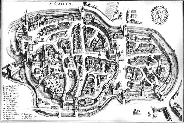 Keywords: Stadtplan St Gallen 1642.png St Gallen 1642 St Gallen 1642 Topographia Helvetiae Rhaetiae et Valesiae Das ist/ Beschreibung unnd eygentliche Abbildung der vornehmsten Stätte und Plätze in der Hochlöblichen Eydgenossschafft / Graubündten / Wallis / und etlicher zugewandten Orthen In dieser andern Edition mit sonderm fleiß durchgangen/ und von virgen Fehlern corrigirt / vermehrt und gebessert Franckfurt am Mayn 1654 1642 Matthäus Merian upload by sidonius 14 26 19 December 2006 UTC old PD-old-100 Old maps of St Gallen Merian Helvetiae Engravings of cities in Switzerland 1642 in Switzerland |