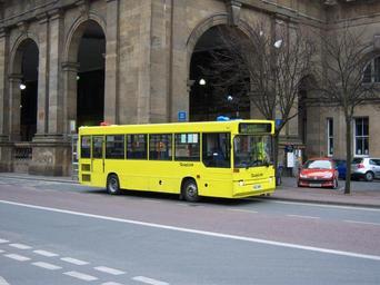 | Keywords: Stagecoach North East 32112 K112SRH Dennis Dart Plaxton Pointer 7 March 2009 Quaylink.JPG Stagecoach North East's 32112 K112 SRH a Plaxton Pointer bodied Dennis Dart midibus in Newcastle upon Tyne England painted in the colours of the hybrid bus scheme Quaylink although this bus is only one of several relief vehicles used as spares for regular buses that operate the two Quaylink routes linking Newcastle and Gateshaed to the Quayside Despite the similar colour this elderly diesel powered bus is in marked contrast to the hybrid gas-turbine/electric Designline vehicles normally used in both shape and by virtue of being around 12 years older than the Designline hybrids This bus was part of a batch built in 1993 After a brief spell as a demonstrator with Blackpool Transport it joined the rest of its batch at London Buses Ltd as part of their DRL series and was put to work in North Street Garage in East London On privatisation of London Buses it became part of Stagecoach Group's London bus fleet It stayed in London until 2001 when it was transferred to Stagecoach Busways as No 1300 later to become Stagecoach North East No 32112 where it served in standard corporate colours likely both the earier and definitely the http //www nebpsne fpic co uk/p55743229 html latter versions before its repainting in 2008 into the Quaylink colours along with sister bus No http //www jeffsbuslane co uk/latest/08090913 JPG 32134 K134 SRH That particular bus has a non-standard rear end due to damage sustained after being stolen in London for a ram raid robbery Reports also suggest that 32121 K121 SRH is in use for Quaylink spare duties own 2009-03-07 User Ultra7 QuayLink Dennis Dart Dennis buses in the United Kingdom Plaxton buses in the United Kingdom K prefix registered buses in the United Kingdom Buses in the United Kingdom photographed in 2009 Public transport buses in the United Kingdom Midibuses in the United Kingdom Stagecoach UK Bus Buses at Newcastle railway station |