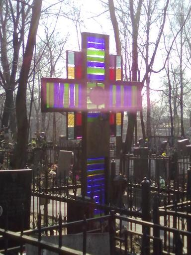 | Keywords: Stained Glass Cross.jpg en Stained glass cross Unknown grave at the Piatnitskoe Cemetery Moscow ru К ест из вит ажного стекла на одной из могил Пятницкого кладбища в оскве own Christina Bedina 2010-04-14 Piatnitskoe Cemetery Crosses on stained glass windows |