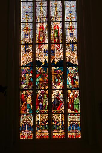 | Keywords: stained glass window church sacral architecture glass cathedral color duomo colored glass monument history light window italy ancient sacred art stained glass architecture gothic romanesque style colors lights vipiteno south tyrol middle ages art jesus crucifixion |