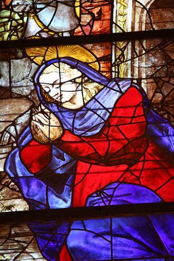 Keywords: stained glass window leon glass light church virgin faith prayer
