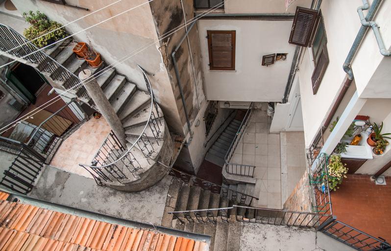 Keywords: staircase round roof stairway step circle climb stairs upstairs windows houses building italian tuscany perspective birds eye