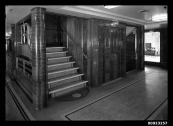 Keywords: awatea tss awatea tssawatea samuel j hood studio collection samueljhoodstudiocollection hood collection hoodcollection union steamship company unionsteamshipcompany new zealand newzealand merchant vessel merchantvessel luxury liner luxuryliner ship interior shipinterior blackandwhite monochrome photo border black and white View of stairs and lift of TSS AWATEA. AWATEA, built in 1936, was owned by Union Steamship Company and was known as the 'Queen of the Tasman Sea'. It was a luxury liner that serviced the trans-Tasman route. AWATEA was requisitioned by the British Government during World War II and was sunk in 1942. This photo is part of the Australian National Maritime Museum’s Samuel J. Hood Studio collection. Sam Hood (1872-1953) was a Sydney photographer with a passion for ships. His 60-year career spanned the romantic age of sail and two world wars. The photos in the collection were taken mainly in Sydney and Newcastle during the first half of the 20th century. The ANMM undertakes research and accepts public comments that enhance the information we hold about images in our collection. This record has been updated accordingly. Photographer: Samuel J. Hood Studio Collection Object no. 00023257 View of stairs and lift of TSS AWATEA. AWATEA, built in 1936, was owned by Union Steamship Company and was known as the 'Queen of the Tasman Sea'. It was a luxury liner that serviced the trans-Tasman route. AWATEA was requisitioned by the British Government during World War II and was sunk in 1942. This photo is part of the Australian National Maritime Museum’s Samuel J. Hood Studio collection. Sam Hood (1872-1953) was a Sydney photographer with a passion for ships. His 60-year career spanned the romantic age of sail and two world wars. The photos in the collection were taken mainly in Sydney and Newcastle during the first half of the 20th century. The ANMM undertakes research and accepts public comments that enhance the information we hold about images in our collection. This record has been updated accordingly. Photographer: Samuel J. Hood Studio Collection Object no. 00023257 |