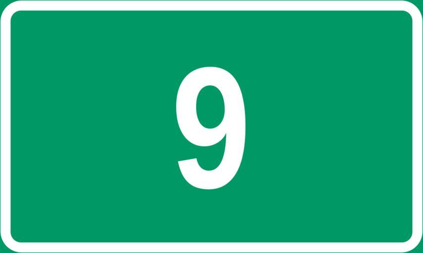 Keywords: Stamvei 9.svg en Diagram of norwegian trunk road sign Own work by uploader based on File Tabliczka E svg BjørnN 2009-02-19 Diagrams of route signs of Norway 009 9 number