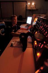 Keywords: Standing watch during a fire drill.jpg en 030216-N-6967M-018 The lights go out over BM1 DSW Marc Chase as he stands watch during a fire drill Unlike most gas masks which are designed to move with a person to escape a smoky environment the masks in the control center are hooked right into the console Personnel need to maintain systems as long as possible to ensure the safety of the divers All Hands June 2004 pg 0 Photo by Photographer's Mate 1st Class AW Shane T McCoy This photo was taken for but did not appear in the magazine RELEASED http //www navy mil/view_ahhphotos asp page 10 Shane T McCoy 2004-06 PD-USGov-Military-Navy Photographs by Shane T McCoy Surface equipment for underwater diving Fire drills |