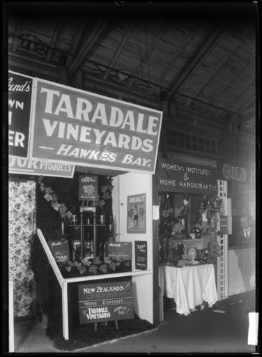 | Keywords: blackandwhite monochrome text shop black and white View of stalls at a trade fair, probably held in Auckland. The stands advertise Taradale Vineyards, Hawkes Bay, and Women's Institutes & Home Handicrafts Ltd. The wine exhibit shows a decoration of vine leaves, and a number of bottles of wine. Labels visible include one for Muscat, with the name B. Steinmetz beneath. Photograph taken by William Archer Price Quantity: 1 b&w original negative(s). Physical Description: Dry plate glass negative 4.5 x 6.5 inches Stands at a trade fair in 1930, advertising Taradale Vineyards, Hawkes Bay, and Women's Institutes & Home Handicrafts Ltd. Price, William Archer, 1866-1948 :Collection of post card negatives. Ref: 1/2-000106-G. Alexander Turnbull Library, Wellington, New Zealand. natlib.govt.nz/records/23253258 View of stalls at a trade fair, probably held in Auckland. The stands advertise Taradale Vineyards, Hawkes Bay, and Women's Institutes & Home Handicrafts Ltd. The wine exhibit shows a decoration of vine leaves, and a number of bottles of wine. Labels visible include one for Muscat, with the name B. Steinmetz beneath. Photograph taken by William Archer Price Quantity: 1 b&w original negative(s). Physical Description: Dry plate glass negative 4.5 x 6.5 inches Stands at a trade fair in 1930, advertising Taradale Vineyards, Hawkes Bay, and Women's Institutes & Home Handicrafts Ltd. Price, William Archer, 1866-1948 :Collection of post card negatives. Ref: 1/2-000106-G. Alexander Turnbull Library, Wellington, New Zealand. natlib.govt.nz/records/23253258 |