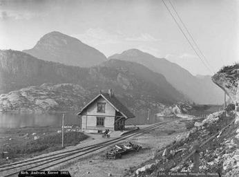 Keywords: Stanghelle stasjon.jpeg en Stanghelle railway station on Vossebanen now Bergensbanen in Vaksdal Norway http //www nb no/cgi-bin/galnor/gn_sok sh id 46724 skjema 2 fm 4 creator Axel Lindahl 1883 - 1890 PD-old-100 Axel Lindahl Stanghelle stasjon Mountains of Hordaland Gamle Vossebanen 60 33N 5 44E Stanghelle Station, 1892, is a railway station located at the village of Stanghelle in Vaksdal municipality in Hordaland county, Norway. Opened 1883. |
