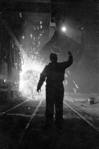 Keywords: Stanley Kubrick - Steelworker with molten steel cph.3d02357.jpg en Steel worker in mill as molten steel spills from vat in Chicago Illinois LOC-image cph 3d02357 Creator Stanley Kubrick 1949 PD-Look Stanley Kubrick Stanley Kubrick 1949 in Chicago Steel industry in the United States Steel production Look American magazine |