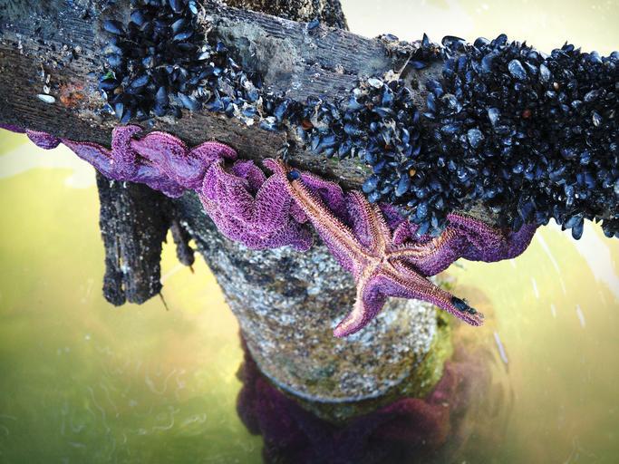 Keywords: star fish starfish dock shore shellfish sea life marine purple