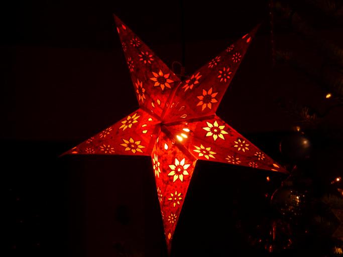 Keywords: star poinsettia decor christmas light rays lighting red cozy