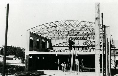 Keywords: Star Theatre under construction in Darwin.jpg en The Star Theatre under construction The builder was Harold Snell Previously picture shows were held in the Don Picture Show on the corner of Cavenagh Street and Bennett Street which consisted of a high galvanised iron fence a slab of cement seating and was completely open air Later H Snell built a hotel on that site after the Starr Theatre was opened The Star Theatre was 2/3 under cover but because there was no air-conditioning in those days the area immediately in front of the screen was uncovered Tom Harris became the proprietor In the days of the silent films he used to sing to entertain the audience during the interval His future wife who was then Heather Bell played the piano PH0233-0018 1928-01-01 http //hdl handle net/10070/13190 Northern Territory Library V Fletcher other versions Custom license marker 2016 08 09 PD-Australia Images from the Northern Territory Library