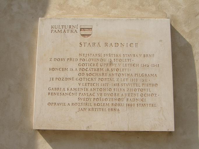 Keywords: Stara radnice (Brno) 4.JPG Stará radnice v Brně Own 2008-04-17 Lukáš Malý uvolňuji dílo Stará radnice Brno Cultural heritage plaques in Brno