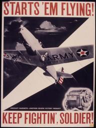 | Keywords: Start's `em flying^ Keep fightin', soldier - NARA - 534813.tif Scope and content General notes 534813 Local identifier 179-WP-962 Office for Emergency Management War Production Board 01/1942 - 11/03/1945 Still Picture Records Section Special Media Archives Services Division NWCS-S National Archives at College Park 8601 Adelphi Road College Park MD 20740-6001 other date circa 1942 1943 Record group Record Group 179 Records of the War Production Board 1918 - 1947 Record group ARC 508 War Production Board compiled 1942 - 1943 Series ARC 533858 File unit File unit ARC Variant control numbers NAIL Control Number NWDNS-179-WP-962 yes Other versions <gallery> File Start's_`em_flying _Keep_fightin' _soldier_-_NARA_-_534813 tif tif File Start's_`em_flying _Keep_fightin' _soldier_-_NARA_-_534813 jpg jpg </gallery> NARA-cooperation PD-USGov World War II posters from the United States NARA TIF images with categorized JPGs |