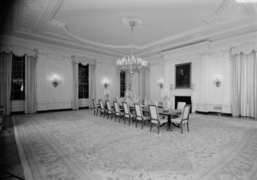 | Keywords: State Dining Room 1983 - SW.jpg en State Dining Room in the White House in Washington D C in 1983 The view is of the southwest corner 1983 http //www loc gov/pictures/item/dc0402 photos 026517p/ Historic American Building Survey National Park Service Jack Boucher photographer other versions PD-USGov Uploaded with UploadWizard State Dining Room |