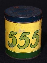| Keywords: State Express cigarettes No 555 tin, photo11.JPG Very old product that is not produced and not sold any more Note that some tins may look the same but when looked for carefully there are some slight differences Photographed at a collector of Droste memorabilia and old tin cans For more info see http //www tincollectors nl/ tincollectors nl or email info tincollectors nl own 2014-02-08 15 04 52 Alf van Beem CC-Zero Trademarked Cigarette tins State Express 555 cigarettes | ||||