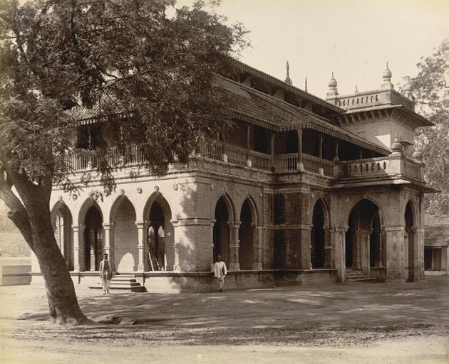 | Keywords: State Library at Baroda in the 1890s.jpg en Photograph of the State Library at Baroda Gujarat from the Curzon Collection taken by an unknown photographer during the 1890s The library was built in 1876 and designed by Major Charles Mant 1840-81 in the Indo-Saracenic style He was a pioneer of the style and used it in his designs for other civic and state buildings in Baroda such as the Countess of Dufferin hospital and his masterpiece the Lakshmi Vilas Palace The library is one of the public offices contained within the Juni Kothi or old fort It predates the Baroda Library movement initiated in c 1910 by the Gaekwar Maharaja Sayaji Rao III ruled 1875-1939 which founded the Central Library a system of state-aided libraries reading rooms travelling libraries and the first library school in India s 1890 http //www oldindianphotos in/2010_07_04_archive html author other versions Custom license marker 2014 11 26 PD-100 Vadodara in the 1890s Uploaded with UploadWizard Libraries in Gujarat British Library Photo 430 Curzon Collection |