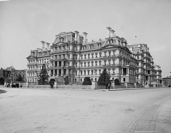 Keywords: State, War and Navy Building 4a09424v.jpg photograph en State War and Navy Building Washington D C creator William Henry Jackson 1843-1942 photographer ; Detroit Publishing Co c1902 1 negative glass 8 x 10 in accession number LC-D401-14222 b w film copy neg LC-DIG-det-4a09424 digital file from original Call Number LC-D4-14222 <P P> P P Repository Library of Congress Prints and Photographs Division Washington D C 20540 USA http //hdl loc gov/loc pnp/pp print http //hdl loc gov/loc pnp/det 4a09424 Rights Advisory No known restrictions on publication DC Past http //dcpast com/post/51470417790/1902-state-war-navy-building <gallery> State_war_navy_building_4a09424a tif tif </gallery> PD-Detroit Washington D C in the 1900s Eisenhower Executive Office Building William Henry Jackson |