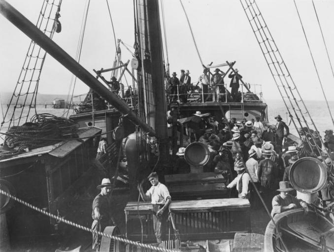 Keywords: StateLibQld 1 100928.jpg en Ship loaded with South Sea Islanders coming to Cairns for work in the sugar industry 1906 handle 10462/deriv/69642 Item is held by John Oxley Library State Library of Queensland PD-Australia StateLibQld-License South Sea Islanders |