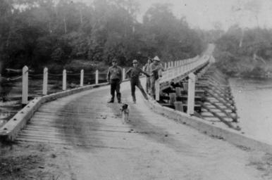 Keywords: StateLibQld 1 109768 Abergowrie Bridge, Ingham, Queensland, ca. 1934.jpg en Abergowrie Bridge Ingham Queensland ca 1934 <br /> Wooden trestle bridge on the Herbert River <br /> Note that the coordinates given by the source for this image are of the town of Ingham not the bridge circa 1934 handle 10462/deriv/129332 Item is held by John Oxley Library State Library of Queensland PD-Australia StateLibQld-License Herbert River 1934 in Queensland Black and white photographs Abergowrie Queensland |
