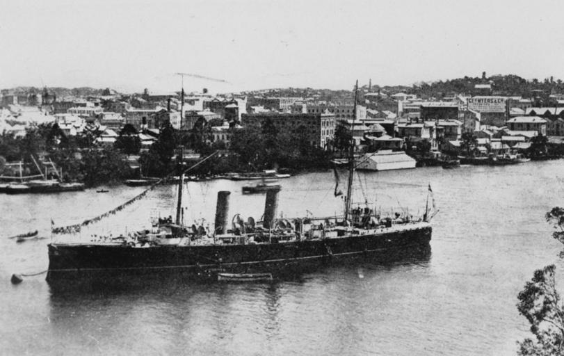 Keywords: StateLibQld 1 112160 Ship festooned with flags anchored off Brisbane in the Town Reach, ca. 1895.jpg en Ship festooned with flags anchored off Brisbane in the Town Reach ca 1895 circa 1895 handle 10462/deriv/133760 Item is held by John Oxley Library State Library of Queensland PD-Australia StateLibQld-License Brisbane River Steamships of Australia Ships in Brisbane Cityscapes in Queensland 1895 in Brisbane Black and white photographs |