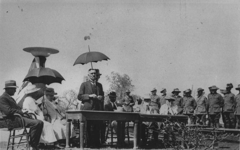 | Keywords: StateLibQld 1 112732 Official ceremony for the town fountain unveiling, Springsure, ca. 1920.jpg supplied with photograph circa 1920 handle 10462/deriv/133077 Item is held by John Oxley Library State Library of Queensland PD-Australia StateLibQld-License Military uniforms of Australia Men's clothing of Australia Tables in Australia Women's clothing of Australia Springsure Queensland Black and white photographs Unveiling ceremonies | ||||