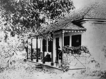 Keywords: StateLibQld 1 113140 Resident surgeon of Brisbane Hospital, Dr.Frederick Barton, 1851-1863.jpg en Resident surgeon of Brisbane Hospital Dr Frederick Barton 1851-1863 Dr Barton is pictured standing on the verandah of a brick building possibly the Brisbane hospital He is wearing a top hat jacket and trousers There is a woman sitting in a chair in the centre of the verandah and an empty rocking chair at the end The verandah has carved wooden posts and a decorative edge under the roof The house has a shingled roof and vines are growing on the wall 1863 handle 10462/deriv/133497 Item is held by John Oxley Library State Library of Queensland PD-Australia StateLibQld-License Brick buildings in Queensland Shingle roofs in Australia Men's clothing of Australia Verandas on single story Queensland houses Black and white photographs |