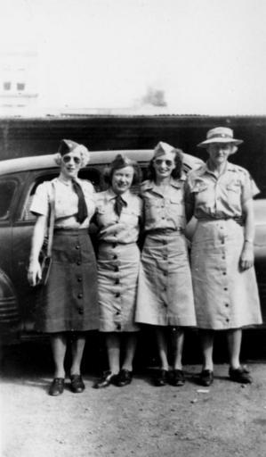 | Keywords: StateLibQld 1 123554 Women drivers known as the Four Musketeers, posing in front of their car in Brisbane, ca. 1944.jpg en Women drivers known as the Four Musketeers posing in front of their car in Brisbane ca 1944 Pictured from left Miss Fox Polly Teasdale Midge Ruddle and Thelma Drury The women drove for the Americans during World War II and belonged to an Australian organisation called the Women's National Emergency Legion They were engaged to drive for the United States Army through the Transportation Section 81st Air Depot Group which was based in the Valley Motor Pool and later at Eagle Farm The women chosen were very efficient drivers as they had to drive American left hand drive cars sometimes for long distances They were also responsible for chauffeuring high ranking officers around Brisbane Uniforms consisted of khaki shirt and skirt buttoned down the front with a darker tie tucked into the shirt A khaki forage cap and heavy shoes completed their outfit circa 1944 handle 10462/deriv/3691 Item is held by John Oxley Library State Library of Queensland PD-Australia StateLibQld-License Vehicles in Australia Military uniforms of Australia Military of Australia Women of Australia World War II home front in Brisbane Black and white photographs Women's National Emergency Legion |