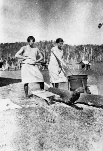 Keywords: StateLibQld 1 126875 Grace and Annie boiling clothes washing copper.jpg en Grace and Annie boiling clothes washing copper Washing for the family outdoors in Queensland The women are waiting for the clothes to boil up in the copper and one stands by with a washtub and washboard to give the clothes and extra scrub Possibly Rockburgh Farm near Caboolture circa 1925 handle 10462/deriv/81439 Item is held by John Oxley Library State Library of Queensland PD-Australia StateLibQld-License Farms in Australia Washboards Laundry 1925 in Queensland Black and white photographs |