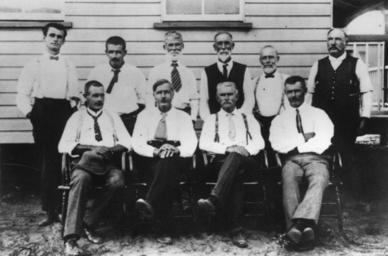 | Keywords: StateLibQld 1 15002 Emerald Shire Council members.jpg en Emerald Shire Council members 1916 handle 10462/deriv/69 Item is held by John Oxley Library State Library of Queensland PD-Australia StateLibQld-License Men's clothing Emerald Queensland Local government in Australia Black and white photographs |